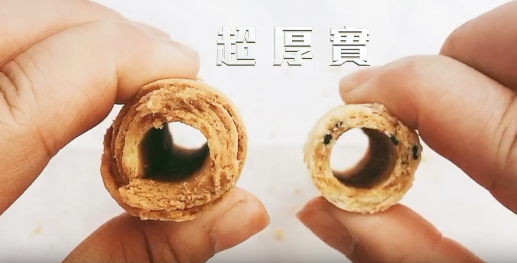 看小編的手就知道,我真的捏得超用力!最後海邊的蛋捲還是獲勝了!吃起來整體不僅有蛋捲感,也有餅乾的感覺,一次得到了雙倍的滿足,而且盒裝14隻只要$380。
