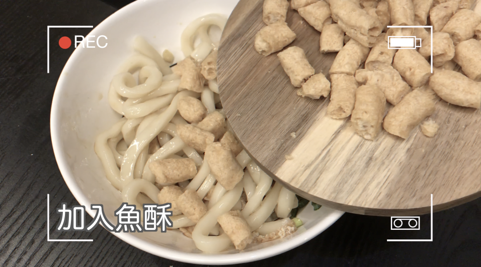 單吃麵拌醬油會有些單調,搭配上魚酥後,口感層次就會升級蠻多的。