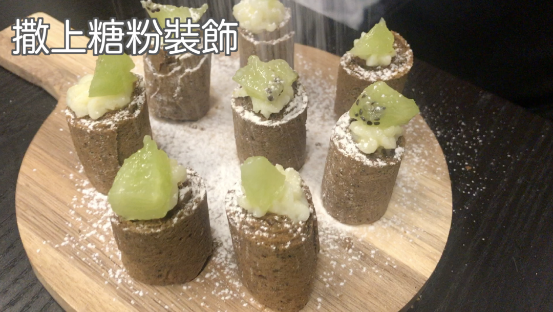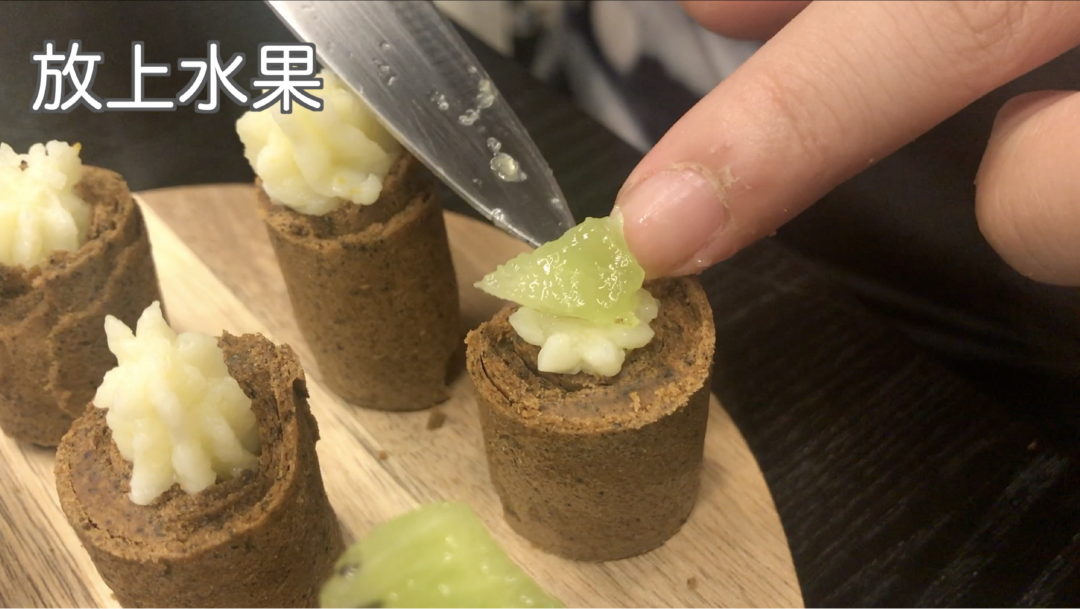 但是我們這集不吃蛋糕,牡蠣要教大家做女生會為之瘋狂的『茶蛋捲水果塔』也是一口水果塔~