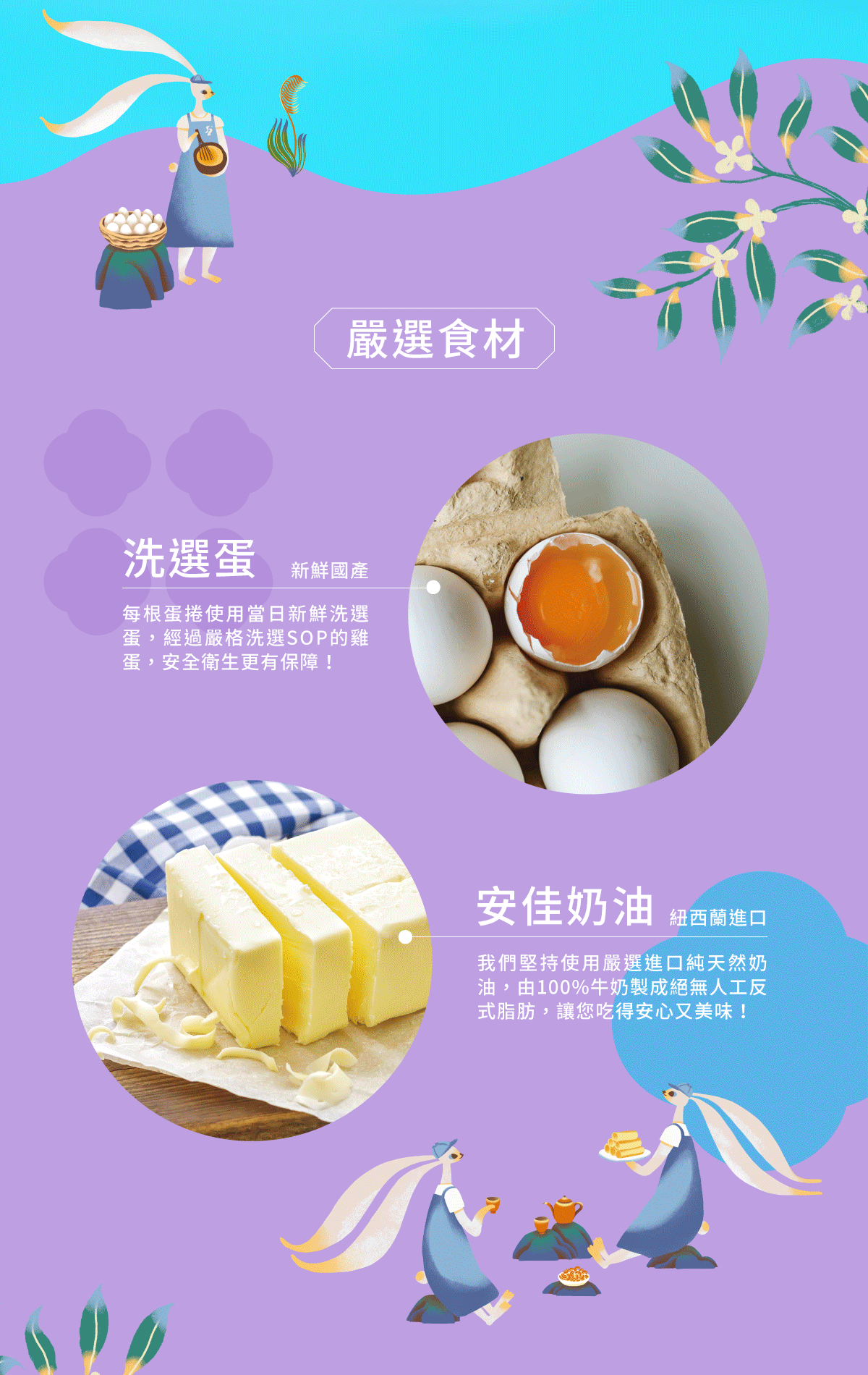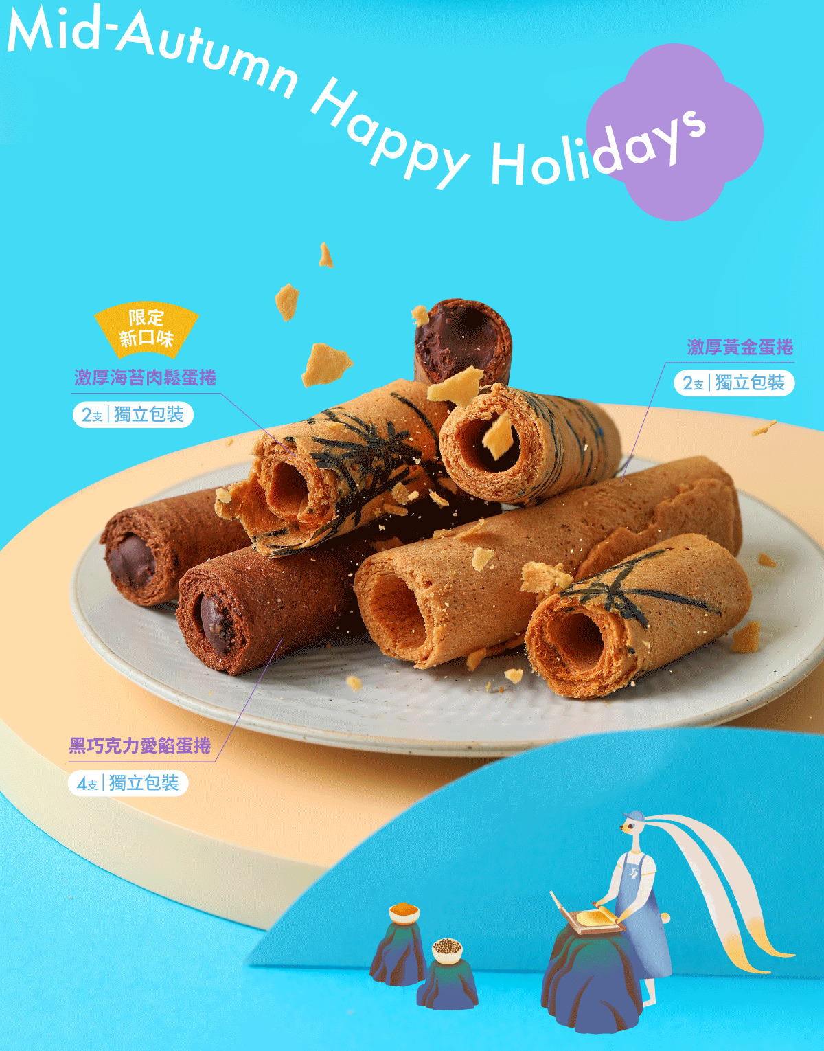 外盒設計大方,插畫上的玉兔不搗麻糬改成製作蛋捲的小廚師