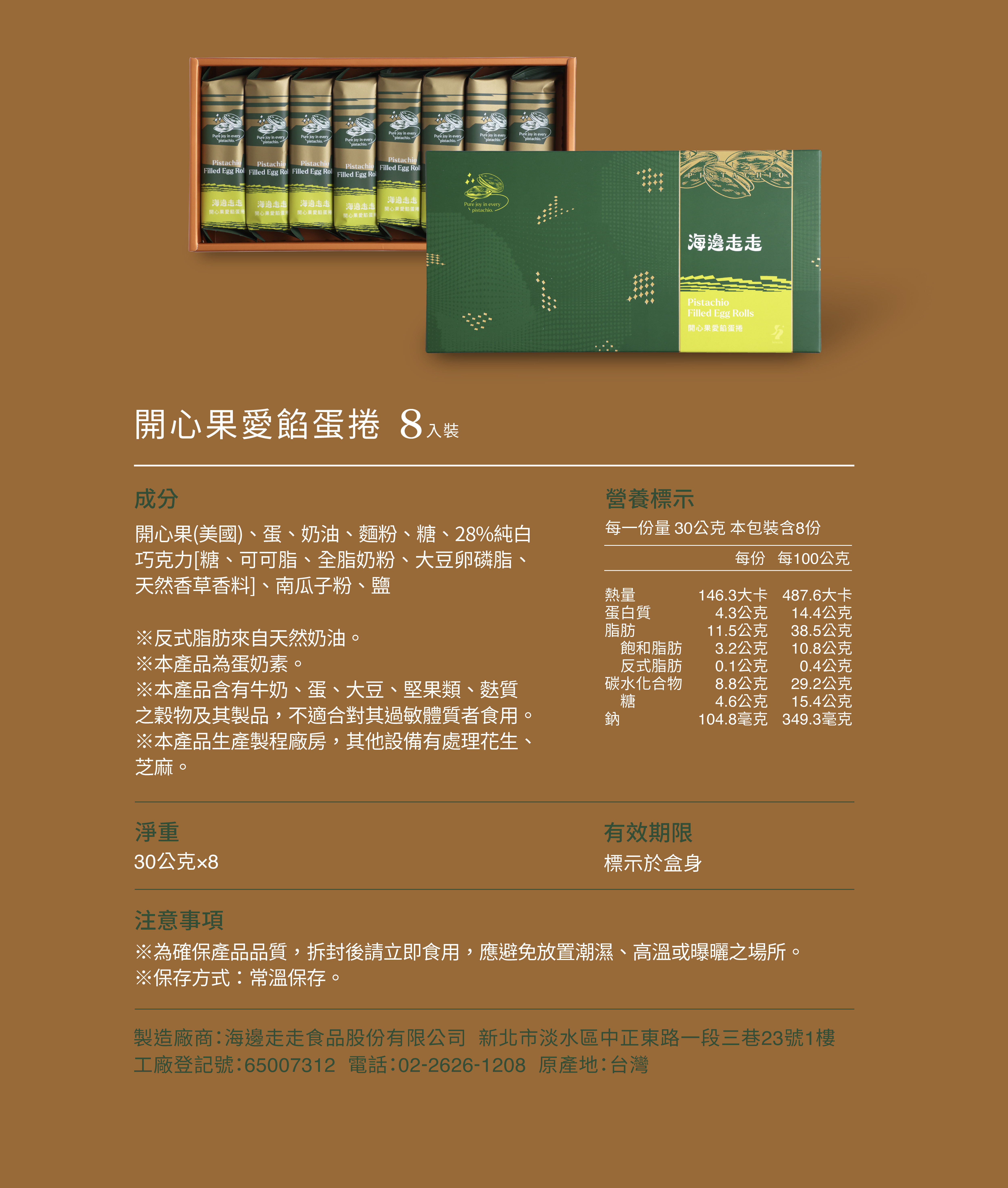 開心果愛餡蛋捲|8支入 (獨立包裝)