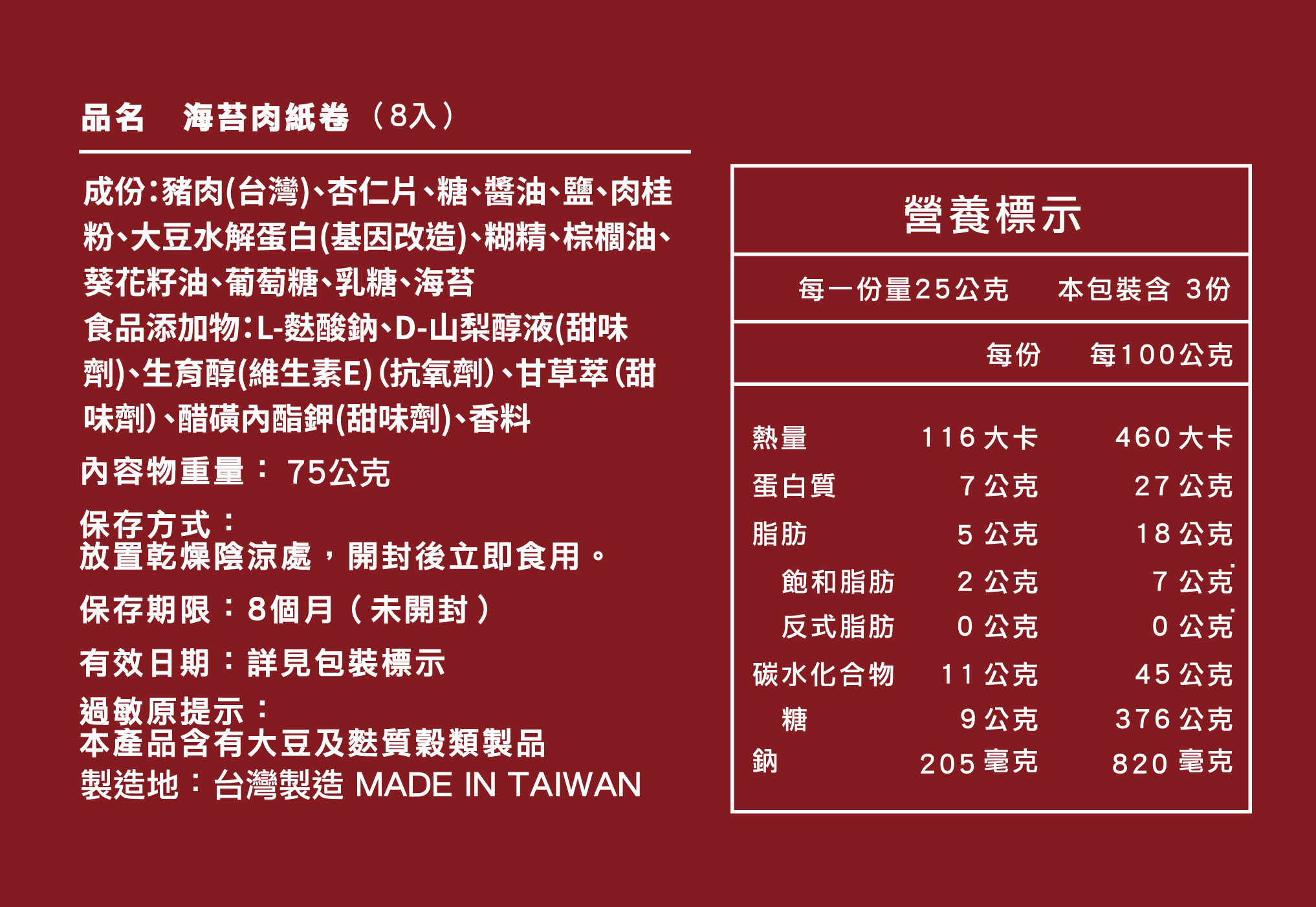 海苔肉紙卷|一包8入(共3包)